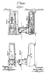 The general fear of premature burial led to the invention of many safety devices which could be incorporated into coffins. Most consisted of some type of device for communication to the outside world such as a cord attached to a bell that the interred person could ring should they revive after the burial. A safety coffin of this type appears in the 1978 film The First Great Train Robbery,[1] and more recently in the 2018 film The Nun.[2] Other variations on the bell included flags and pyrotechnics. Some designs included ladders, escape hatches, and even feeding tubes, but many forgot a method for providing air.