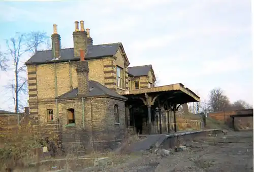 Saffron Walden railway station served the town of Saffron Walden, Essex, between 1865[1] and 1964.[2] The station was 43 miles 43 chains (70.07 km) from London Liverpool Street, on the Saffron Walden Railway between Audley End and Bartlow.[3]