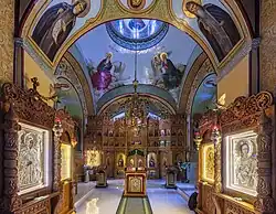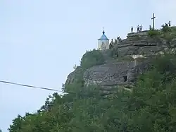 The "Holy Trinity" Monastery of Saharna,[1] situated about 110 km north of Chișinău, on the west side of the Nistru River, is considered to be one of the biggest centres for religious pilgrimages in Moldova. Here can be found the unique relics of the Blessed Macarie, and on the top of the high cliff, according to a legend, there is a footprint of St. Maria, the Mother of Jesus. The legend says that a monk from the monastery once saw the shining figure of Saint Maria on the top of a rock. When reaching that spot the monk saw a mark of a footstep on the ground.