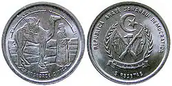 | 5 Pesetas | 1992 | Cu+Ni | 21.00 | ValueCoat of ArmsREPUBLICA ARABE SAHARAUI DEMOCRATICA