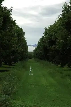 The Continental Farm of Sahuarita plays a central role in town history. In 1915, worried about the possibility of a German blockade of rubber imports, Bernard Baruch, Joseph Kennedy and J.P. Morgan founded the farm along the Santa Cruz River with hopes of growing guayule: plants that provide rubber. The project was abandoned after the end of World War I, and in 1922, was sold to Queen Wilhelmina of the Netherlands. The Queen rented the land to cotton farmers, in what would be the primary crop for the following four decades. In 1948, R. Keith Walden relocated the Farmers Investment Co. (FICO) from California to Arizona, buying the Continental Farm lands from the Queen. In 1965, over fears of a fall in demand for cotton resulting from the advent of synthetic fibers, Walden switched his crop to pecans. Today, the FICO pecan orchard is the largest in the world, with over 6,000 acres (24 km2) and 106,000 trees.[15]