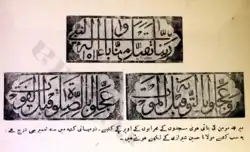 The mihrab is made out of black basalt. Over it is an inscription in the Thuluth script. 1014 AH (1605/1606 CE) is given in the inscription as the date of the mosque's erection. The Shia durood is carved on either side of the niche.[4]