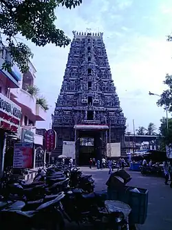 This temple is located next to the Saidapet Railway station. This temple has a 7-storied Gopuram with two prakarams (closed precincts of a temple). The main deity is Lord Karaneeswara and Goddess Swarnaambikai. This temple has a beautiful tank. The temple is heavily crowded on Pradhosham days. Annual ten-day Brahmotsavam takes place in the Tamil month of Chithirai. During Chitirai thirvizha, people visit the temple in huge numbers and there will be a daily spiritual talk on Thiruvasagam about Lord Shiva.