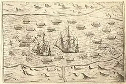 The ongoing war between the Spanish Empire and the Dutch Republic was matched by hostilities in Maluku where Spain and Tidore stood against the VOC and Ternate.[5] The Dutch actively tried to prevent any attempts to make a separate peace between Ternate and Tidore. The VOC noted that Saidi was a political man who was no great friend of Spain but who strove to secure Tidore's position within the power balance between the Europeans.[6] Several clashed nevertheless took place during the 1640s. Tidore turned out to be the more successful "due to its greater carefulness and bravery"[7] Foodstuff was brought to Tidore from its vassals in Halmahera and even from the Papuan Islands, where Tidorese influence had been established by this time. One of Saidi's helpers was the chief Gurabesi whom later traditions associate with the origins of Tidore rule in the Papuan lands.[8] In 1649 a number of battles and mutual raids took place, culminating in a Tidore-Spanish invasion in Ternate where the Dutch were defeated with considerable losses. Before the VOC were able to stage a counter-attack, news of the Peace of Westphalia reached the East Indies, and hostilities were cancelled.[9]