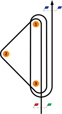 For the Tempest course area B(ravo) was used. The location (54°30'30'’N, 10°13'00'’E) points to the center of the 2 nm radius circle.[1][5] The distance between mark 1 and 3 was about 2nm.
