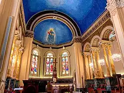 In 1879, the Monegasque prince Charles III commissioned the construction of a new church to accommodate the growing population of Monte-Carlo.[2] One of the builders was Italian-born Jean-Baptiste Pastor.[3] The church's dedication to Charles Borromeo highlighted the Borromeo family's historic ties to the Grimaldi family, the ruling family of Monaco.[2] Bishop Charles Theuret of Monaco laid Saint-Charles's corner stone on November 11, 1879; it was completed and opened on Easter Monday, March 26, 1883, and subsequently declared a parish church on March 15, 1887.[2]