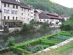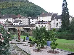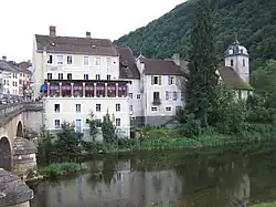 The town lies 30 km (19 mi) south of Montbéliard on the banks of the river Doubs.