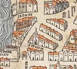 The church on the map of Paris (1550)