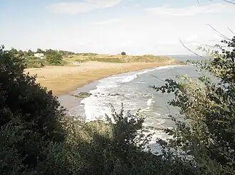 From the Pointe de l'Ève to the Pointe de la Lande, the boundary between Saint-Nazaire and Pornichet, the coast measures a little more than 3 kilometres (1.9 mi). It has numerous southeast-facing beaches, including: