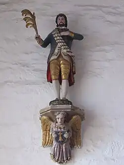 Born in Ireland with the Irish name of Fingar, he was converted to Christianity by Saint Patrick and after spending time in Brittany went with 7 (or 777) companions to Cornwall, landing at Hayle, where he was martyred by King Teudar.[Notes 2][1][2] Gwinear was said to have died with his followers by being thrown into a pit of reptiles. An alternative version sets the story in Brittany with Guigner being martyred at the hands of Prince Tewdwr.[3]