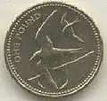 Queen Elizabeth's effigy was redesigned on most of the denominations in 1991, followed by the rest in 1998. Seven-sided 20-pence coins were also first introduced in 1998 and, in that same year, older 5- and 10-pence coins were replaced by downsized issues featuring new animal designs. However, the 50-pence coin was not downsized until 2003. Until that time, the original, larger-sized 50-pence coin continued to circulate. In 2002, nickel-brass £1 coins were introduced to replace the note, and bimetallic £2 coins were introduced to the islands the following year. The edge inscriptions of the £2 coins are (in capitals) "500th Anniversary" for the 2002 coin, and "Loyal and Faithful" for the 2003 coin.