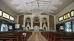 Father Salvador Millan built the present church which was finished in 1897.[2] However, another earthquake destroyed the church on July 16, 1990, under Father Abraham R. Esquig. The convent was converted into a Catholic School, with the blessing of Msgr. Mariano Madriaga on July 2, 1972. The reconstruction of the damaged church was planned and executed by Architects Angel B. Abad, Roman A. Macaraeg and Alvin M. Torio during the term of Father Abraham R. Esquig. It was blessed on September 28, 2002.