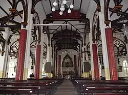 The church became dilapidated for neglect after the Chinese Rites controversy during the ruling of Yongzheng Emperor (1722–1735) of the Qing dynasty (1644–1911). In 1853, French missionaries Staislas Clavelin (葛必达) and Murice Sentinier (桑理爵) refurbished and redecorated the church when they came to Wuxi to preach.[1] Soon after, it was devastated by the Taiping Rebellion (1850–1864). Murice Sentinier restored the church again in 1864. In 1872, Adrien Languillat built a new building for the church. In 1891, a disastrous fire consumed the new church. And it was rebuilt by missionary Albert Tschepe (彭安多) in 1892.