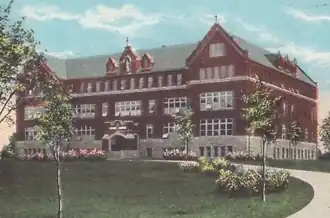 Construction started in 1919, and the building was completed at the end of 1920, with enough room to house 100 students, as well as convent room for the Sisters of Mercy, who provided food and infirmary services. However, enrollment steadily increased, and by the late 1920s, there were again more students than the school had room for. Alterations were made in 1933 to provide more room, and again in 1943. In 1944, a separate convent was constructed for the sisters, and in 1946 the attic was furnished. By 1955, over 200 students were at the school, and in 1956 ground was broken for a new building, Saint Henry Hall. Further additions were made in 1957 and 1958.[2]