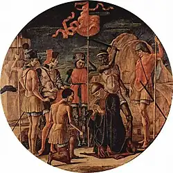 The Saint Maurelius Altarpiece was an oil on panel painting by Cosmè Tura, executed c. 1480, produced for the church of San Giorgio fuori le mura, site of Maurelius of Voghenza's shrine. Two tondos from it survive, Trial of St Maurelius and Martyrdom of St Maurelius, both now in the city's Pinacoteca Nazionale.[1][2]