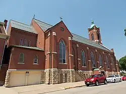 The parish was founded in 1852 as a mission of St. Raphael Cathedral.[2] The parish buildings were built on land that Bishop Mathias Loras had purchased when it was offered for sale by the Federal government. Originally, a wood-frame building was used as a church building, and was located at what is now the front of the rectory. The first church was dedicated by Bishop Loras in 1853. St. Patrick's became an independent parish five years later when the Rev. Patrick McCabe was assigned as the first resident pastor. The cornerstone of the present brick church was laid in 1877, and the building dedicated on August 15, 1878. In 1928, the Rev. J.J. Hanley remodeled and enlarged the church.
