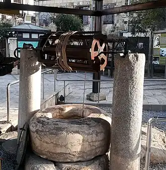 The well, made of mostly rectangular-cut stone, measures 1.15 metres (3 ft 9 in) in diameter at the top and has a depth of 38 metres (125 ft).[3]