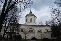 The original church on the site was built between 1752 and 1758.[1] Funds were supplied by the learned boyar Ștefan Bosie,[2] whom the expense bankrupted;[3] he was later joined by hetman Vasile Ruset and the merchant Anastasie Lipscanul of Corfu. The ktitors also founded the hospital, Iași's first, in 1757. This took place during the rule of Prince Constantin Racoviță, who issued the decree ordering construction.[2] It is unknown why the somewhat unusual name of Spyridon was selected: this is possibly because he was the patron saint of the Ghica family, or because his canon was printed at Iași in 1750. The church was initially used as a monastery, and in 1763, Ecumenical Patriarch Samuel declared it stauropegic, making its archimandrite the titular bishop of Irenopolis. In 1770, during the Russo-Turkish War, the Russian army was quartered inside the building.[3]