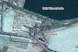 Saint Vincent Beer was a dark lager brewed by monks at Saint Vincent Archabbey in Unity Township, Pennsylvania, United States, between 1856 and 1918. Pope Pius IX granted the monks permission to brew in 1852, ending a dispute with the Diocese of Pittsburgh. The brewery was located in a log cabin near the Saint Vincent Archabbey Gristmill and a brick building supplemented the cabin in 1868. After production ceased, the monastery used the buildings for storage until they burned down in 1926. The walls were removed from the site in 1995 during the restoration of the gristmill.