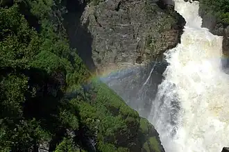 In Saint-Ferréol-les-Neiges are the Seven Chutes, falls which in many cases are 128 m high.[2] Then the river crosses the Canyon Sainte-Anne, a gorge with a length of 10 km. At its end, in Saint-Joachim is the Sainte-Anne waterfall, 74 m high.