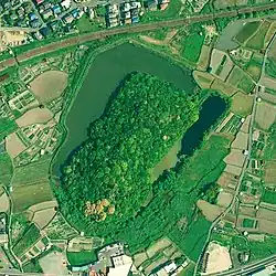 Sairyō Kofun, anterior portion to the right, posterior portion to the left | |