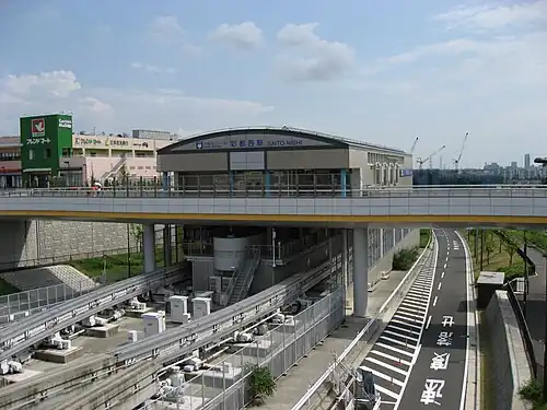 Saito-nishi Station (彩都西駅, Saito-nishi-eki) is a monorail station on the Osaka Monorail located in Ibaraki, Osaka, Japan. It is the terminus of the line. The station is located near Osaka University Minoh Campus.