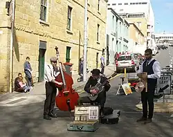 Between 1987 and 2014, Arauco Libre performed live at Salamanca Market every Saturday, playing traditional music from the Andean region of South America, including northern Chile, Argentina, Perú, Bolivia, and Ecuador. Their repertoire included folk, traditional, dance, and carnival tunes, performed with instruments such as the siku (pan pipes), quena (bamboo flute), bombo (drum), charango (ten-string mandolin/guitar), and chakj’chas (shakers). The band consisted largely of political refugees who fled the Pinochet regime in Chile and sought exile in Tasmania in the late 1980s. The band's name refers to the indigenous Araucanian people of southern Chile and Argentina, whose culture and language have been historically suppressed. Hence, the name served as a political statement—'Freedom to the Araucanians'.[3]