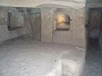 Crosses carved into the wall of the catacombs are proof of Christian burials