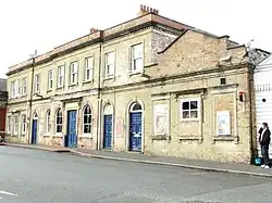 The former Salisbury Milford station was used as a goods station until it was closed in 1967 and demolished in 1968.[10] Goods traffic was also handled in goods sheds at the west end of the Fisherton station – north of the GWR station and south of the LSWR station – and also on the 460 yards (420 m) Market House branch from the east end of the LSWR station which opened in 1859.[1] A new LSWR marshalling yard was opened on the site of the old platform east of Fisherton Street after it had closed in 1902, but the main LSWR goods depot was kept at the old Milford station until 1967. The former GWR station remained in use as a goods depot until 1991.