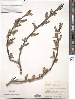 Synonyms of the species are Salix filistyla C. Wang & PY Fu and Salix himalayensis (Andersson) Floderus var. Filistyla (C. Wang & PY Fu) CF Fang.[2]