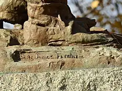 Signature of the artist on the monument in Mount Hope Cemetery.