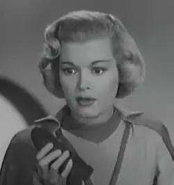 She is perhaps best remembered, however, for her 1954 role as spaceship navigator Vena Ray on the syndicated science fiction show Rocky Jones, Space Ranger.[2] She was chosen from 300 who auditioned. Her character anticipated Nichelle Nichols' much more famous role as a female spaceship bridge officer on the 1960s television series Star Trek. The same year Mansfield carried the Miss Emmy torch at the Palladium during the sixth annual Academy of Television Arts & Sciences awards banquet.