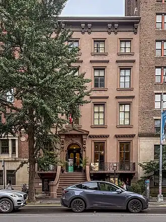 Growing rapidly, the organization was housed in a series of rented properties including 121 Fifth Avenue, 49 West 22nd Street, 40 West 22nd Street and finally 14 West Twelfth Street, where it remained for 22 years.[7] In April 1917, following a three-year search, the club purchased Irad and Sarah Hawley's 1853 Italianate-style brownstone townhouse at 47 Fifth Avenue between East Eleventh and East Twelfth Streets from the estate of William G. Park for $75,000.00 and erected a two-story annex in the rear at an additional cost of $20,000.00 to house its primary art gallery and a billiard room. A housewarming event on February 5, 1918 was attended by more than 500 persons.[4][5][7] In 1918, the club spearheaded a national effort to produce range-finder paintings used to train military gunners for World War I. The club provided the canvas and painting materials for these special-purpose paintings.[8]