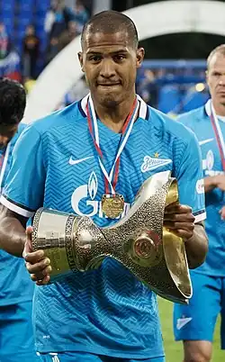 Rondón holding the Russian Super Cup after Zenit's victory in 2015