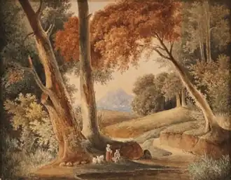He returned home, without definite plans, but felt uninclined to take part in his father's business. Instead, he joined a group of young men, known as the Dienstags-Compagnie, that met for discussions and social activities at the homes of their parents (in winter) or at a vineyard clubhouse in Selnau. There, they became enraptured by "Naturschwärmerei" (nature enthusiasm or enchantment) and fancied themselves to be ancient shepherds.