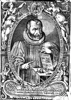 In 1576, having completed his studies and being in search of employment, he was hired as embassy chaplain by Joachim von Sintzendorff, Habsburg ambassador to Istanbul (1578–81).[3] He traveled as a Habsburgian envoy to Constantinople[4] with an Austrian delegation from Vienna on a diplomatic mission of Emperor Rudolf II to Sultan Murad III.[5] He spent several years attached the Habsburg embassy,[6] in the role of Hofprediger (court preacher)[7] successor to Stephan Gerlach.[8] In this travel diary, he vividly describes his personal experiences and also provides an interesting insight into life in the former Ottoman Empire. He deduced that "Serbians, Bulgarians, Rascians, have their origins in the ancient German tribes of Daci",[9] and also wrote about Bulgarian jewelry, curious at the nose rings he saw worn by the women and the "exoticism" he witnessed.[10] He also commented on jugglers, fires, the "clumsy" music of the Turks, their food, customs, and buildings.