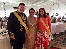 Princess Royal Salote Mafile'o Pilolevu Tuita, with Princess Marie-Therese of Hohenberg and Anthony Bailey at the coronation of King Tupou VI on 4 July 2015 in Nuku'alofa, Tonga.