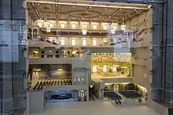 In March 2021, the church announced significant changes to the renovation plan that affected many elements in the temple's historic interior. The progressive room-to-room live endowment ceremony would be removed and the layout of the temple would change, with the baptistry being moved to the annex and new instruction rooms constructed in its place. Other rooms and walls would be reconfigured, requiring the removal of the temple's murals. The murals and many other historic features of the building were photographed and otherwise documented before being permanently removed or destroyed.[27] These changes will allow for greater patron capacity, but the removal of many historic elements was met with criticism, especially the destruction of the temple's murals. One prominent historian described the changes as a "huge and unnecessary loss" and another noted them as a loss of "priceless cultural artifacts".[30]