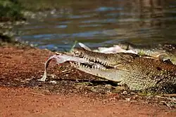 - ^ Doody, J. S. (2009). "Eyes bigger than stomach: prey caching and retrieval in the saltwater crocodile, Crocodylus porosus". Herpetological Review. 40 (1): 26.