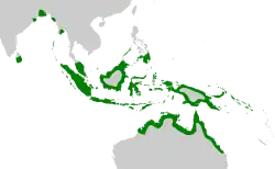In Malaysia, it was recorded in Klias, Segama and Kinabatangan Rivers in Sabah.[86][87][88] In Sarawak, it was recorded by a camera trap in Kuching Wetlands National Park.[89] In the Lesser Sunda Islands, it is present along the coasts of Sumba, Lembata Island, Flores, Menipo, Rote Island, and Timor. Its status along Alor Island is unknown, where one individual was captured in the 2010s.[90] In the Maluku Islands, it is present around the Kai Islands, the Aru Islands, and many other islands in the region, including the Torres Strait Islands. In Papua New Guinea, it is common within the coastal reaches of every river system, such as the Fly River and in the Bismarck Archipelago.[91] In the Philippines, it occurs in a few coastal sites like eastern Luzon, Palawan, the Liguasan Marsh, and Agusan River on Mindanao.[4]