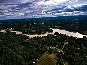![]() An aerial shot of Saluda Lake circa 2019 from the Greenville side facing towards Easley | |