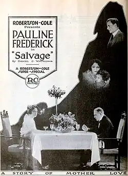 Salvage is a lost[1] 1921 American silent drama film directed by Henry King and starring Pauline Frederick. It was produced and distributed by the Robertson-Cole Company.[2][3][4]