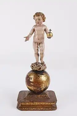 Salvator Mundi, Latin for Saviour of the World, is a subject in iconography depicting Christ with his right hand raised in blessing and his left hand holding an orb (frequently surmounted by a cross), known as a globus cruciger. The latter symbolizes the Earth, and the whole composition has strong eschatological undertones.