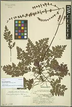 Salvia adiantifolia (Wuyi Mountain sage) is a perennial plant that is native to China, and found growing in forests and in foothills. S. adiantifolia grows on one to a few ascending or erect stems to a height of 30 to 60 cm (12 to 24 in), with mostly basal leaves. Inflorescences are 4-10 flowered verticillasters, mostly in panicles, with a sky blue to white-purple corolla that is 7 to 8 mm (0.28 to 0.31 in).[1]