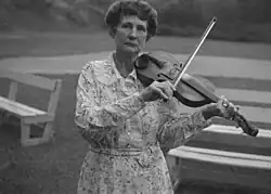 "Aunt" Samantha Bumgarner (October 31, 1878 - December 24, 1960) was an American early country and folk music performer and singer from Dillsboro, North Carolina. She won much praise for her work with the fiddle and banjo. In 1924, accompanied by guitarist Eva Davis, she traveled to New York City and recorded about a dozen songs for Columbia Records.[1] The recordings are also notable for being the first use of a 5-string banjo on a recording. She was a yearly staple at Bascom Lamar Lunsford's Mountain Dance and Folk Festival from 1928 until shortly before her death.