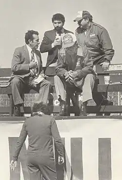 Also a track announcer at several of the tracks, including Darlington, Rockingham and Richmond International Raceway, Bland's "partner" was Ray Melton.[2] The two of them worked with Joe Moore in his early days in the sport. Joe went with Motor Racing Network where is he now an anchor.