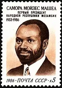Samora Moisés Machel (29 September 1933 – 19 October 1986) was a Mozambican politician and revolutionary. A socialist in the tradition of Marxism–Leninism, he served as the first President of Mozambique from the country's independence in 1975 until his death in a plane crash in 1986.