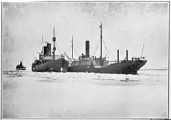 Sampo was powered by two triple-expansion steam engines, one driving a propeller in the stern and the other a second propeller in the bow. The main function of the bow propeller was to reduce friction between the hull and the ice, although the exact details of the icebreaking process were not known at that time.[10] The stern engine produced 1,600 ihp at 110 rpm and the bow engine 1,400 ihp at 115 rpm.[6] During the sea trials the maximum indicated output of the two steam engines was 3,052 ihp and when the engines were producing 2,500 ihp, the icebreaker could maintain a speed of 12.4 knots in open water.[3] Sampo had five coal-fired boilers for the main engines in two boiler rooms and a small auxiliary boiler for heating, deck equipment and light generator in the foremost boiler room.[2] The fuel stores could hold 350 tons of coal that was fed to the fireboxes at a rate of 2.4–3.2 tons per hour.[6] Like all icebreakers of her age, Sampo was also equipped with sails although they were rarely, if ever, used.[34]