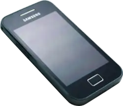 The Samsung Galaxy Ace (also known as Samsung Galaxy Cooper in some territories[3]) is a smartphone manufactured by Samsung that runs the open source Android operating system. Announced and released by Samsung in February 2011,[4] the Galaxy Ace features an 800 MHz Qualcomm MSM7227 processor with the Adreno 200 GPU. It is available in black, with back covers in three different colors: black, purple and white.[5]