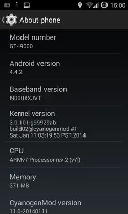 Android 4.4.2, CyanogenMod 11 installed on Samsung Galaxy S I9000